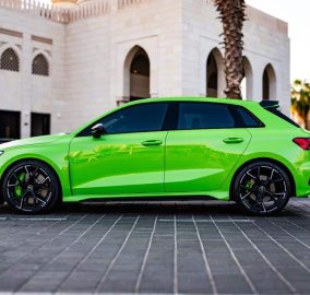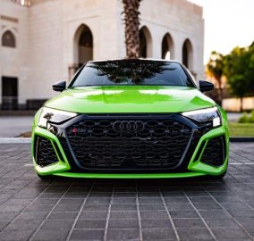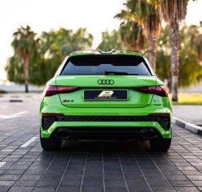 This RS3 works well for anyone who wants a performance rental in Dubai without going into supercar territory. It is also a smart choice if you want something that looks sharp and drives fast without drawing the kind of attention that comes with a Lamborghini or Ferrari. The green makes it distinctive without being aggressive.