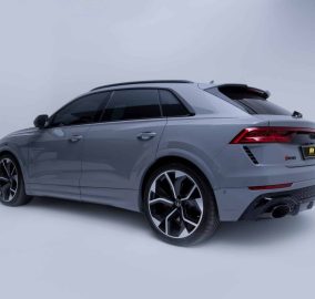 The 2024 RSQ8 in Nardo Gray is one of the most serious performance SUVs available to rent in Dubai. Nardo Gray is a colour that works specifically well on aggressive body shapes and the RSQ8 wide arches, large wheels, and low roofline make it look exactly right in this shade. It is subtle enough to fit anywhere in the city and purposeful enough that people who know cars notice it immediately.
