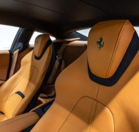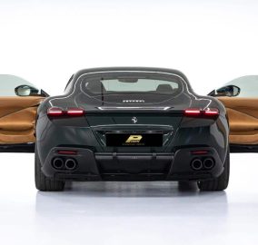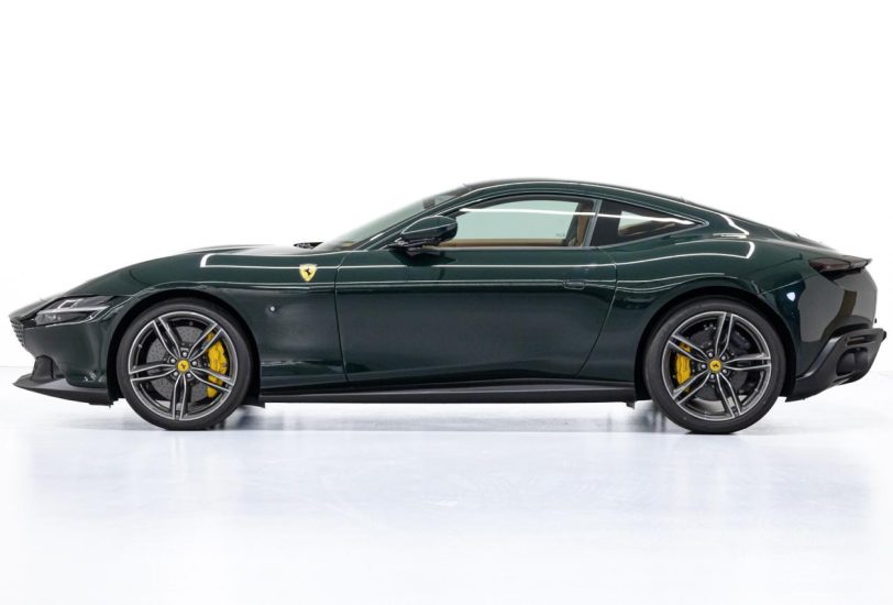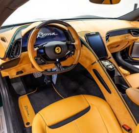 The dark green 2022 Roma is the most understated and most elegant Ferrari available to rent in Dubai. Dark green on the Roma body is a colour that Ferrari has used on its most beautiful grand tourers historically and on the current Roma body shape it looks completely correct. The long bonnet, the flush door handles, and the fastback roofline all read more clearly in dark green than in brighter colours and this specific car looks like it belongs on the roads of Dubai in a way that red or yellow Ferraris sometimes do not.