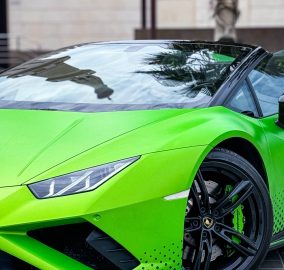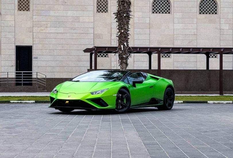Experience refined power with the Lamborghini Huracan Evo Spyder Green 2023.