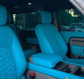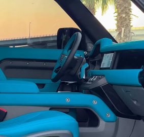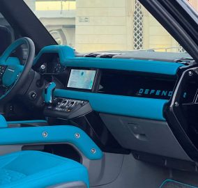 The shorter wheelbase makes the two-door Defender feel noticeably more nimble in Dubai's city driving than the four-door version. It fits into spaces the longer car cannot, turns with more agility, and has a character that feels closer to the original Defender than the more family-oriented four-door. The black and blue two-tone finish on the shorter body looks particularly strong because the proportions work differently with less length and the blue roof stands out more clearly against the black lower panels. This is the Defender for people who want the most driver-focused and most individual version of the new generation car.