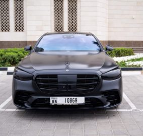 Rent the Mercedes S500 Black 2021 in Dubai. Flagship luxury saloon with free delivery anywhere in the city.