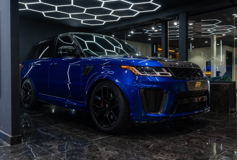 Experience refined power with the Range Rover SVR Glossy Blue 2020.
