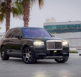 Rent the Rolls-Royce Cullinan Black 2023 in Dubai. The most current Cullinan specification in the most commanding colour with free delivery anywhere in the city.