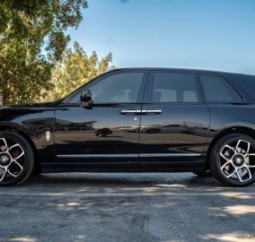 The glossy black 2020 Cullinan is the version of this car that most people picture when they imagine a Rolls-Royce SUV in Dubai. The high-gloss finish on this specific car reflects the city's lights and the surrounding environment in a way that makes the Cullinan look like it is part of whatever backdrop it finds itself against. On the Palm Jumeirah the gloss reflects the water. On Sheikh Zayed Road it reflects the towers. In front of a hotel it reflects the entrance lighting. The glossy black Cullinan is a mirror for Dubai itself and that quality makes it one of the most consistently impressive rental cars in the city.